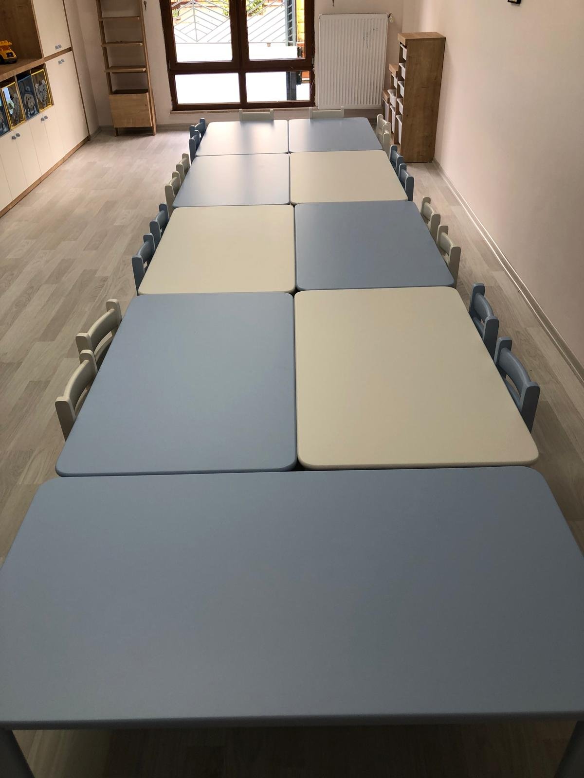 Okul öncesi eğitim kurumları için üretilen anasınıfı masa ve sandalye takımları, dayanıklı malzeme yapısı ve modern tasarım anlayışı ile uzun yıllar güvenle kullanılabilecek şekilde üretilmiştir. Eğitim ortamlarında çocukların konforunu ve güvenliğini ön planda tutan bu mobilyalar, okul öncesi sınıfları için ideal bir çözüm sunmaktadır.